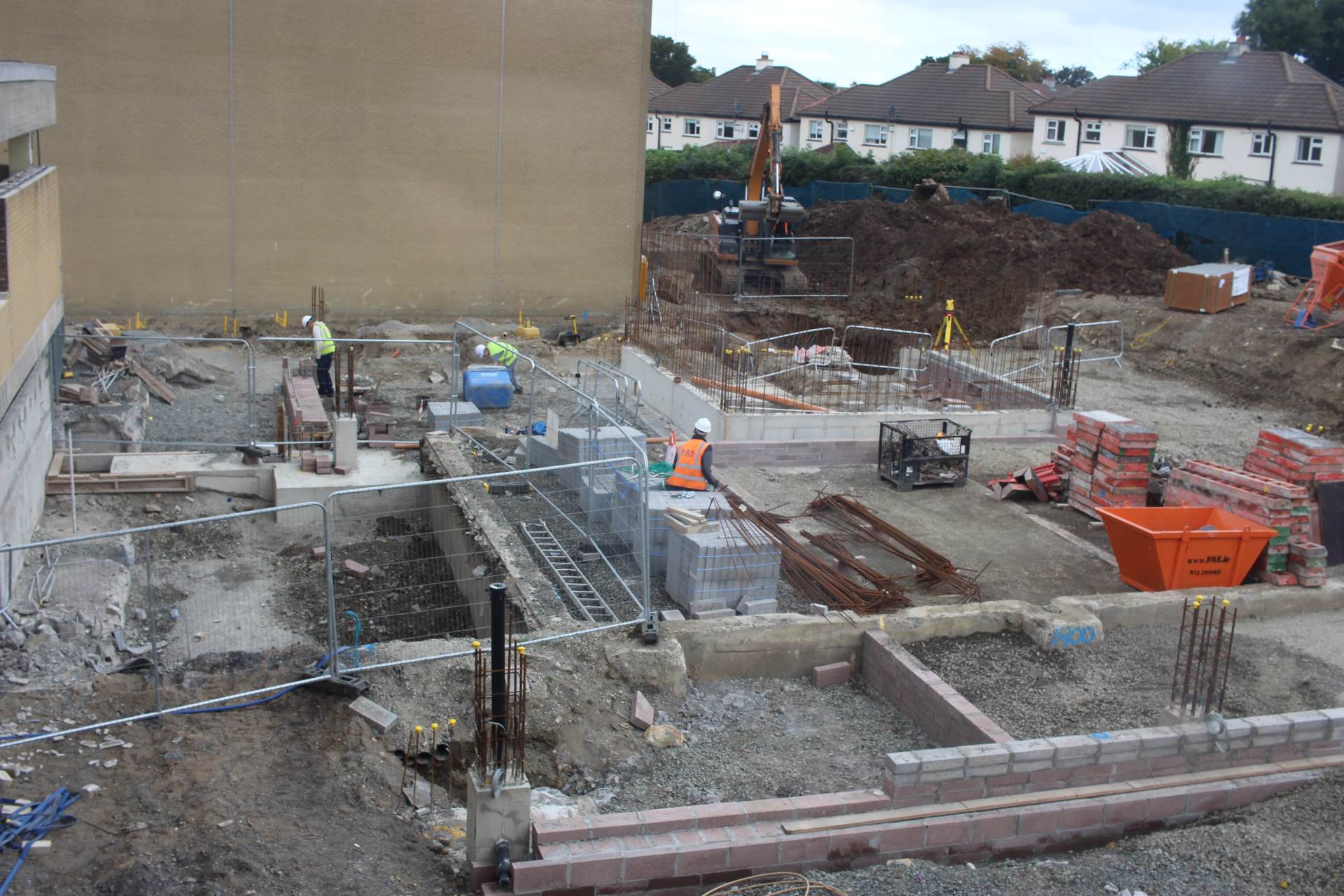 Great progress has taken place on the new link building area of the site and the building is almost complete to ground level. The lift shaft in this area of the site proved to be a tough task due to below ground level works, but it is now complete to ground level and progressing well. All other ground work has gone to plan and the hardcore and radon barriers are in place.