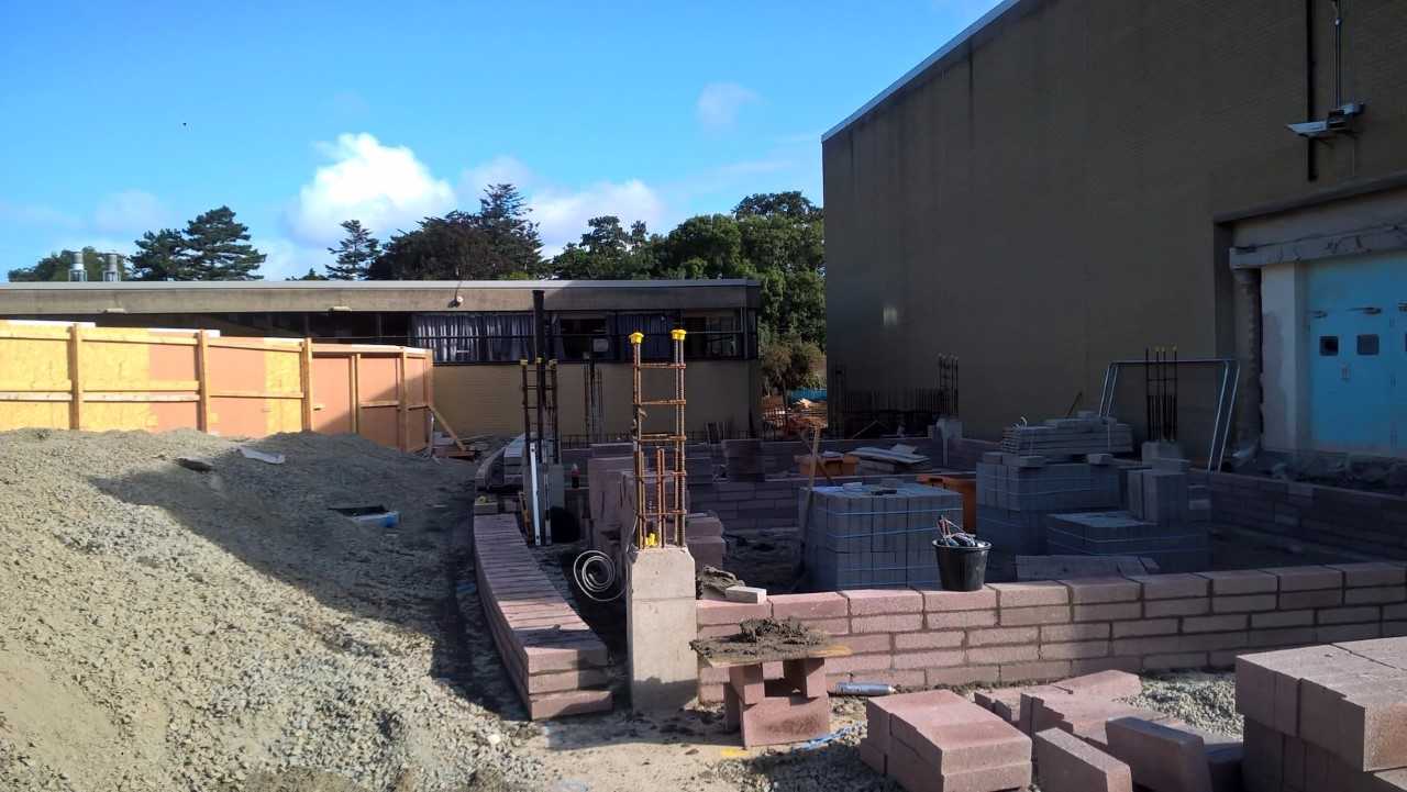 The steel is being tied together at the moment in preparation for the pouring of the concrete. The load bearing concrete wall around the changing areas has also been prepared and is almost ready for pouring.